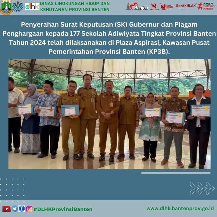 “Ini merupakan bentuk apresiasi Pemerintah Provinsi Banten terhadap sekolah-sekolah yang telah berkomitmen dalam upaya perlindungan dan pengelolaan lingkungan hidup melalui program Adiwiyata,” tambahnya.
