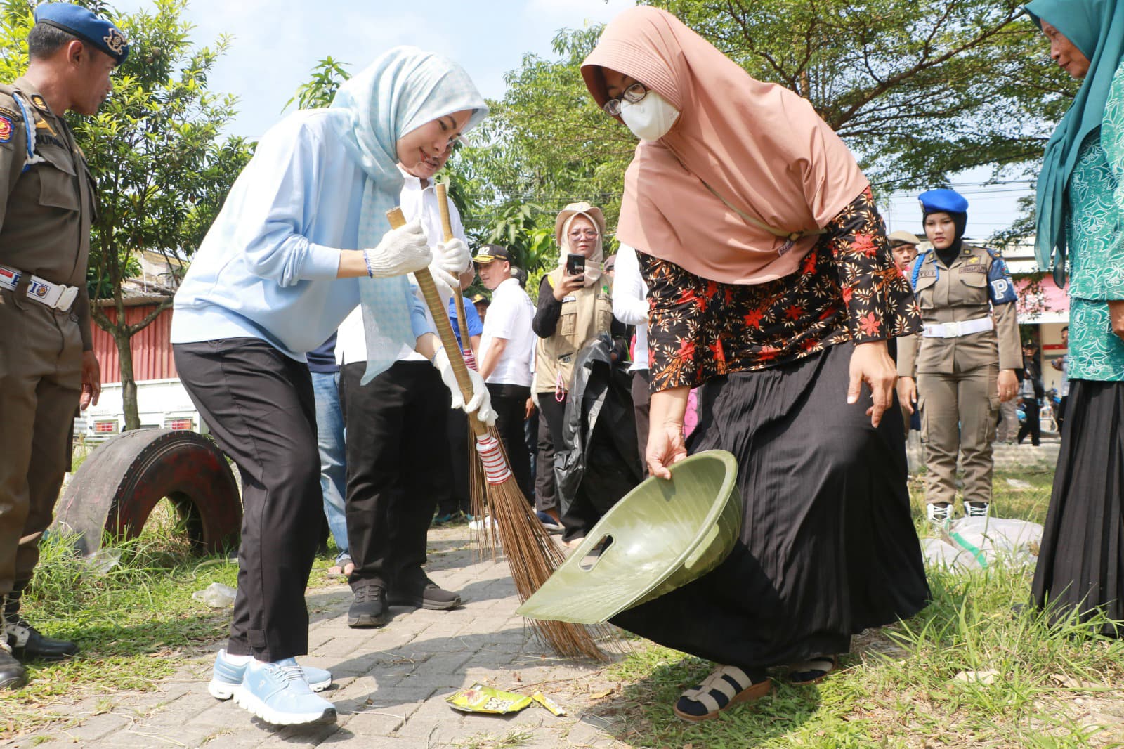 Bupati Serang Ratu Rachmatuzakiyah didampingi Wakil Bupati Muhammad Najib Hamas berjalan kaki di bawah terik matahari untuk membersihkan sampah. Permasalahan sampah, merupakan salah satu program prioritas 100 hari kerja Bupati-Wakil Bupati Serang periode 2025-2030.